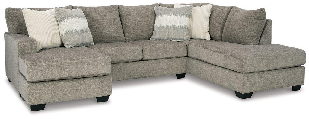 Easy on the eyes, this double chaise sectional expands your seating options with ease. Its generous scale cradles you in comfort, while luxurious upholstery pampers you from head to toe. A collection of coordinating accent pillows adds to the indulgence.