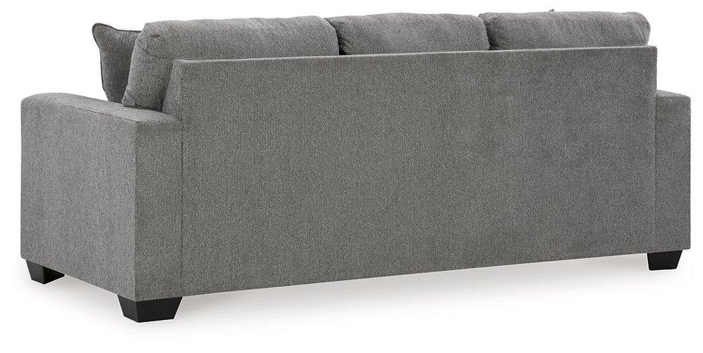 You’re in for a neat treat with this sofa sleeper. Its comfy seats are covered in soft, textural upholstery, and the wide track arms are eager to support your quest for total relaxation. Distressed abstract toss pillows bring a fresh breath of contemporary style while accentuating the sofa's color. The pullout queen memory foam mattress is an added comfort for overnight guests.